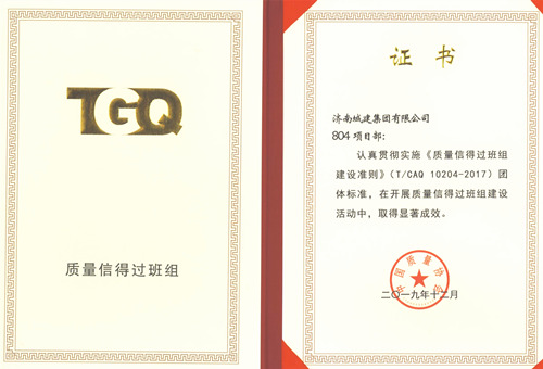 集團(tuán)804項(xiàng)目部榮獲中國(guó)質(zhì)量協(xié)會(huì)“質(zhì)量信得過(guò)班組”