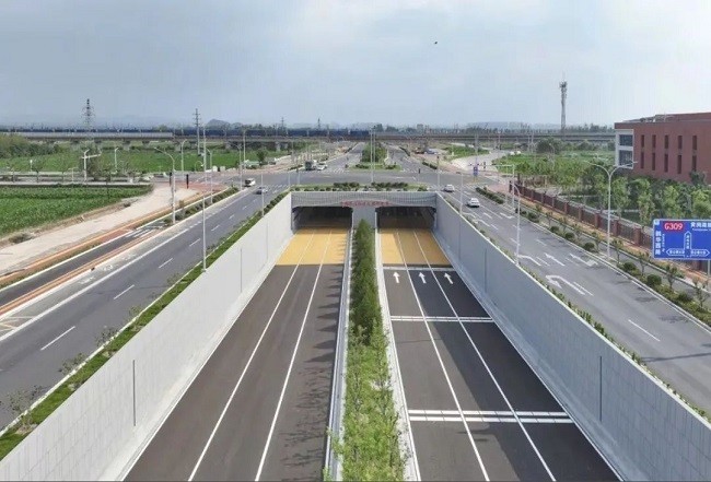 濟濼路穿黃北延隧道地面道路及附屬工程南起黃河隧道北岸敞開段,下穿鵲山水庫,接入國道G308,采用雙向六車道城市主干路標準,設(shè)計時速60公里/小時,總長度4.38公里。道路的順利通車為鵲華九里居等周邊區(qū)域提供了交通便利,為山東省實驗中學鵲華校區(qū)、總部經(jīng)濟區(qū)等項目保障交通通行及市政基礎(chǔ)設(shè)施配套服務(wù)。自此,從濟南主城區(qū)至起步區(qū)核心區(qū)域,車程由原來30分鐘以上縮短至15分鐘,大幅提升通勤效率。