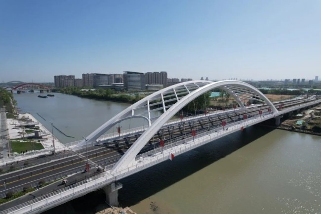 揚(yáng)州二里橋路跨京杭運(yùn)河工程是連接老城區(qū)與新城市中心商務(wù)區(qū)的重要分流通道。項(xiàng)目部以黨建聚力、科技賦能,組織青年突擊隊(duì)保障總重量超5000噸的主橋鋼結(jié)構(gòu)頂推安全。面對(duì)臨時(shí)墩單點(diǎn)集中荷載最大1138噸,突擊隊(duì)員嚴(yán)控支架穩(wěn)定,每日觀測(cè)沉降,確保頂推順利完成。同時(shí),克服梅雨及高溫影響,20余天完成鋼結(jié)構(gòu)系梁吊裝,應(yīng)用“免鑿毛止?jié){帶”“自動(dòng)化噴淋臺(tái)車(chē)”“Cooker保溫車(chē)”等工藝優(yōu)化資源,提升質(zhì)量。工程通車(chē)后,高效承擔(dān)路網(wǎng)銜接轉(zhuǎn)換功能,顯著分流老城與新城核心區(qū)交通壓力,為帶動(dòng)運(yùn)河兩岸的基礎(chǔ)建設(shè)及經(jīng)濟(jì)發(fā)展提供強(qiáng)力交通支撐。