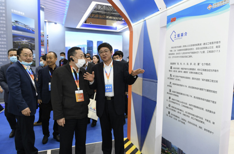 上午,國家住建部城建司一級巡視員趙澤生、省政府副秘書長張積軍、省住建廳廳長王玉志、濟(jì)南市副市長孫斌等領(lǐng)導(dǎo)到城博會現(xiàn)場察看,并專程來到集團(tuán)展區(qū)參觀指導(dǎo)。牟曉巖董事長介紹了集團(tuán)概況、發(fā)展歷程、市場經(jīng)營、多元化發(fā)展,以及集團(tuán)“十四五”發(fā)展戰(zhàn)略等情況,結(jié)合濟(jì)南望岳路隧道、G104黃河大橋模型,重點(diǎn)介紹了集團(tuán)先進(jìn)施工工藝和科技創(chuàng)新成果應(yīng)用情況。國家部委、省市領(lǐng)導(dǎo)對集團(tuán)精細(xì)化管理、跨越式發(fā)展、多元化戰(zhàn)略等方面取得的成績給予高度贊揚(yáng),勉勵(lì)集團(tuán)發(fā)揮市政行業(yè)龍頭企業(yè)優(yōu)勢,履行國企責(zé)任擔(dān)當(dāng),引領(lǐng)帶動城市建設(shè)高質(zhì)量發(fā)展。